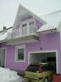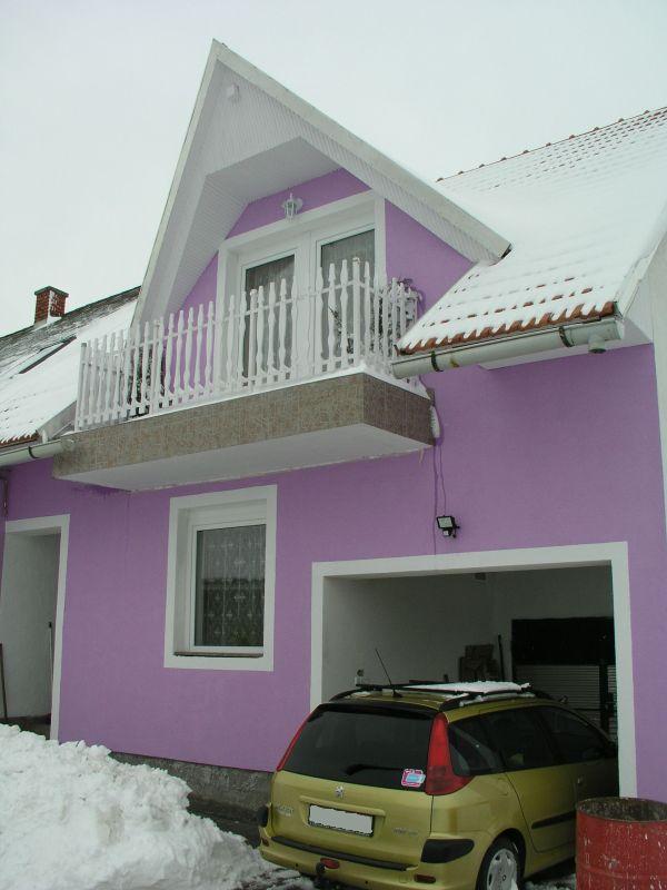 Lila erkélyes épület: